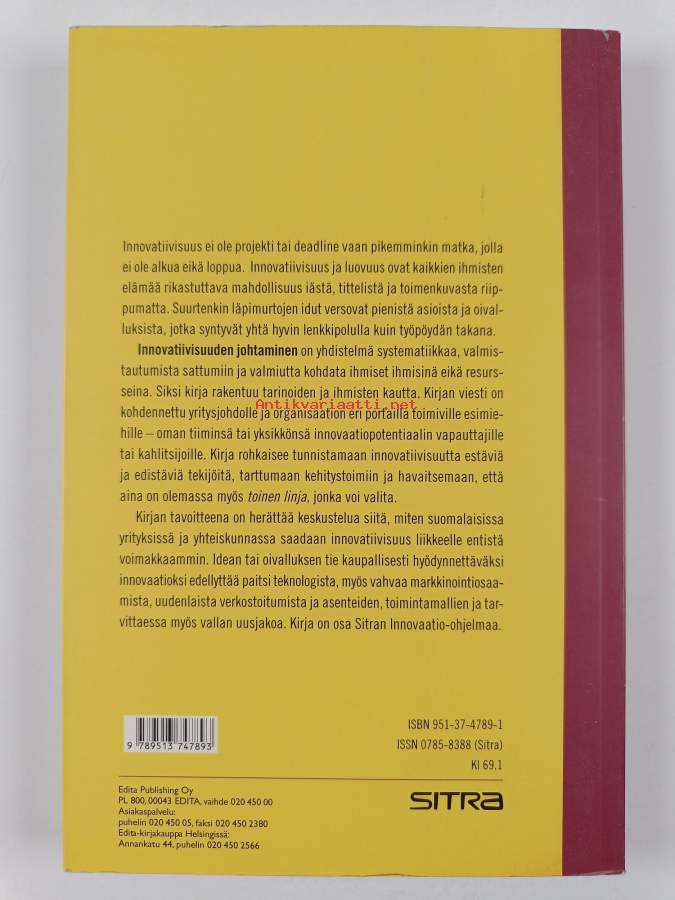 Muu(t) tekijä(t): Jukka PohjolaSarja: Sitra 280Asiasanat: johtaminen, innovaatiot, innovatiivisuus