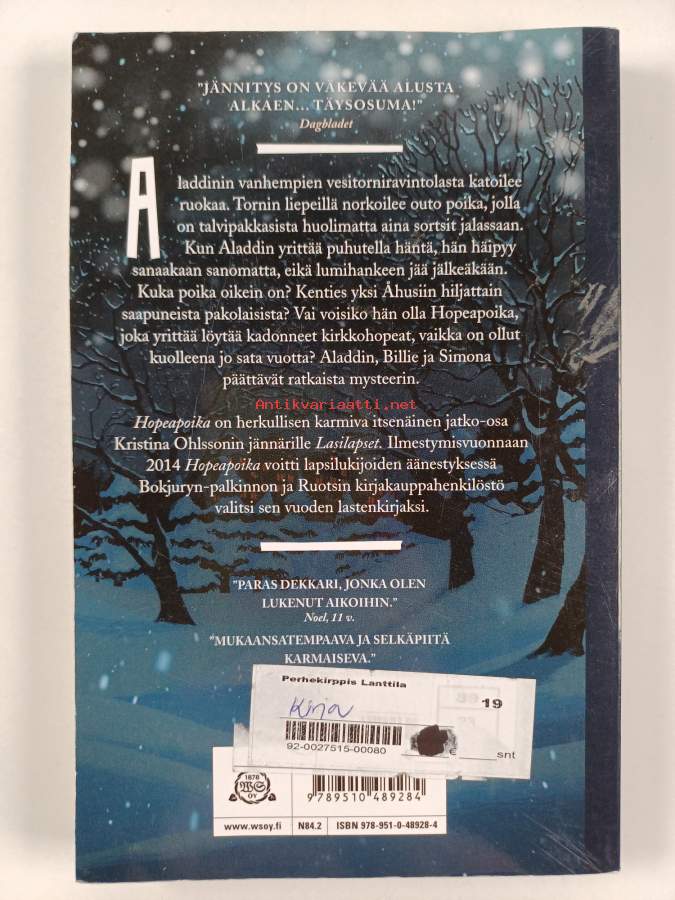 Sarja: Skidit kirjatAlkuteos: SilverpojkenAsiasanat: pojat, kaupungit, ravintolat, Ruotsi, pakolaiset, Varkaus, kadonneet, salaisuudet, aarteet, yliluonnolliset voimat, Åhus