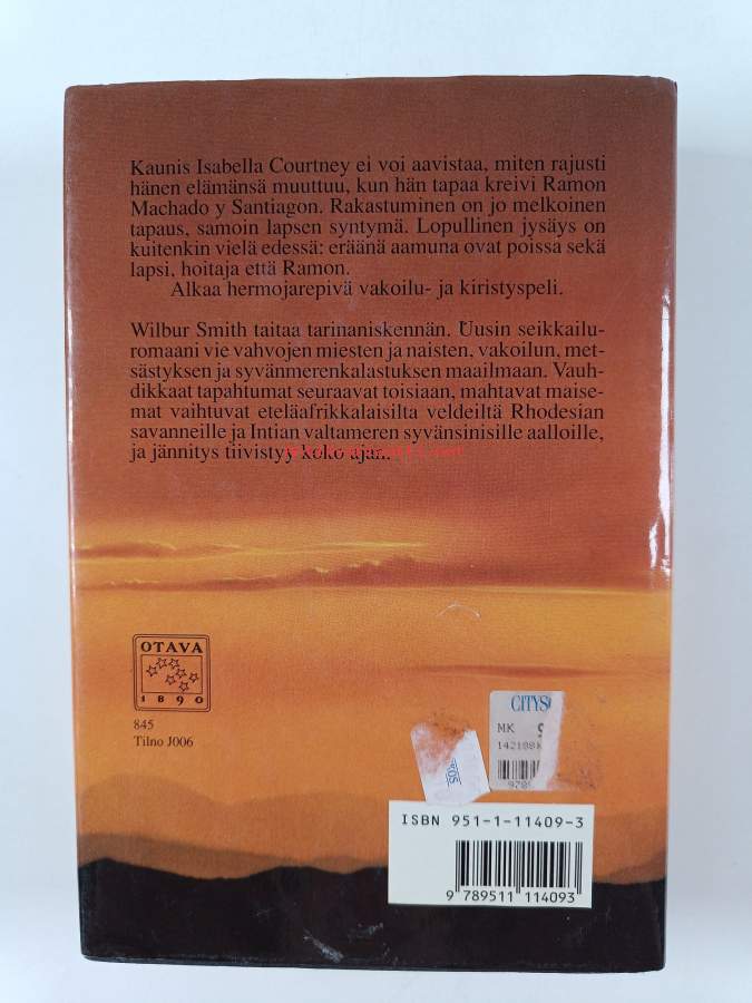 Hyvä. Hieman kulumaa kansissa, takana hintalapun jäämää, selkämyksessä vinoutta. Kansipaperin kunto: pientä kulumaa