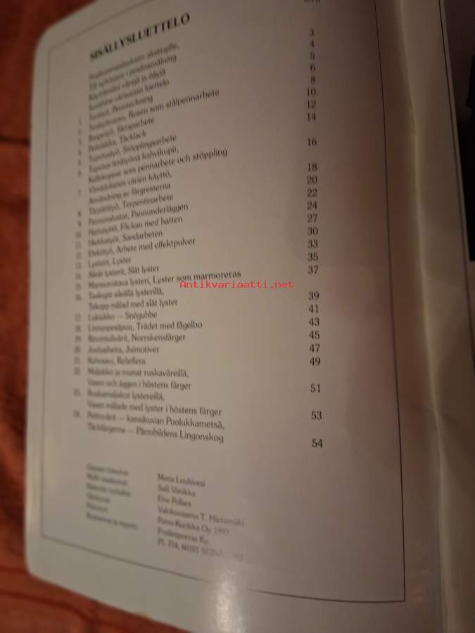 Posliininmaalaus-opas 1.Oppaan toteutus Maria Louhevesi.Mallit maalannut Salli Viinikka, käännös ruotsiksi Elve Pollars.Valokuvar Valokuvaamo T.Hautamäki P.1993.