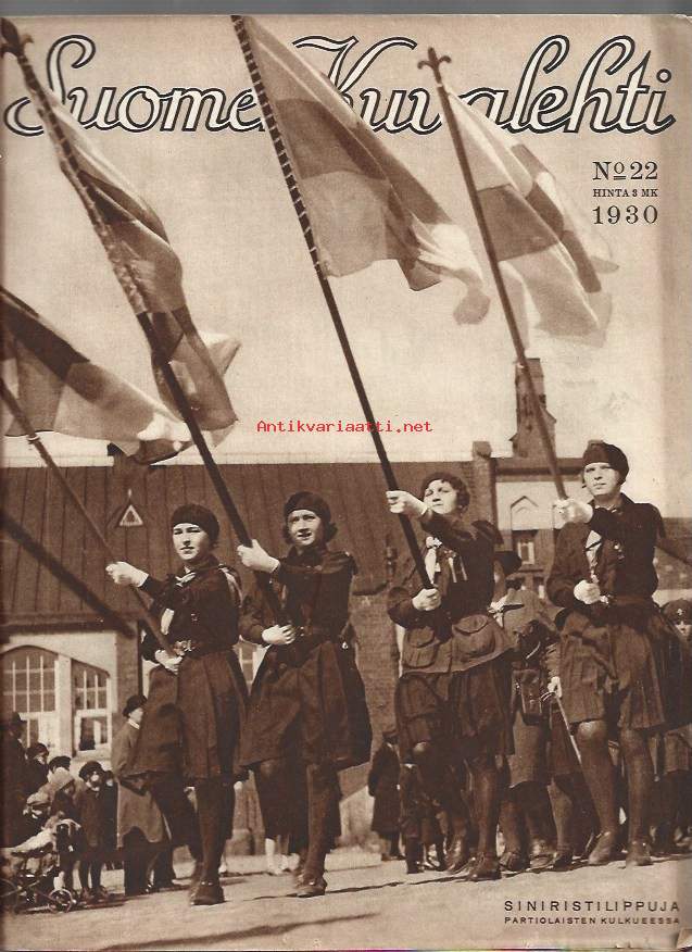 Suomen Kuvalehti 1930 nr 22 / Siniristilippu, suomalaiset Berliinissä, Otava 40 v, autoilija valtateillä ja kyläkujilla, tervahauta,