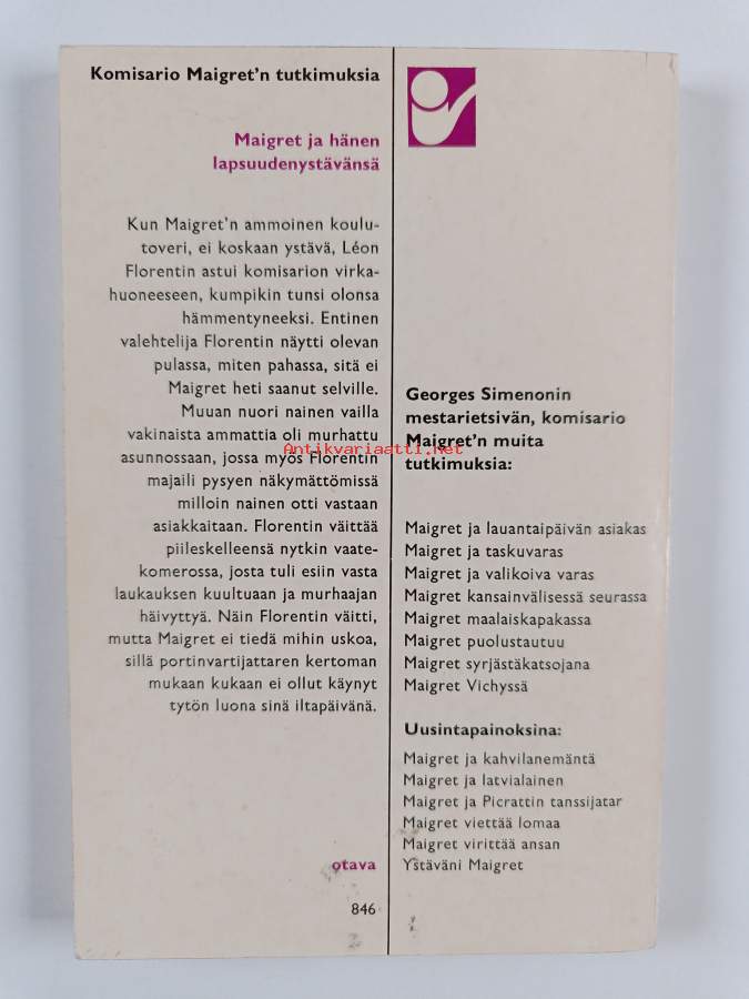 Maigret -setti (11 kirjaa) : Maigret muistelee ; Maigret ja latvialainen ; Maigret murhaajana ; Maigret ja kadonnut asiakirja ; Sumujen satama ; Maigret syrjästäk...