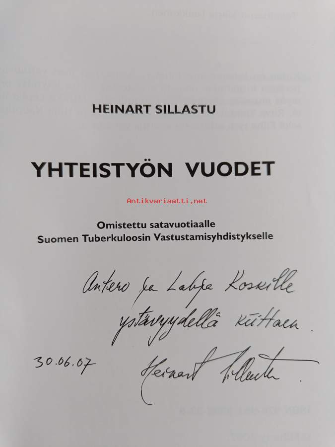 Yhteistyön vuodet : omistettu satavuotiaalle Suomen tuberkuloosin vastustamisyhdistykselle (signeerattu, tekijän omiste)