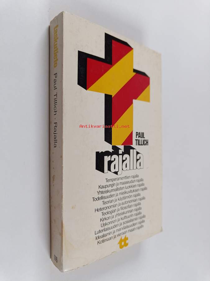 Muu(t) tekijä(t): Taisto NieminenSarja: Taskutieto 116Alkuteos: Auf der Grenze. Aus dem Lebenswerk Paul TillichsAsiasanat: kristinusko, filosofia, uskonnonfilosofia, teologia, uskontofilosofia