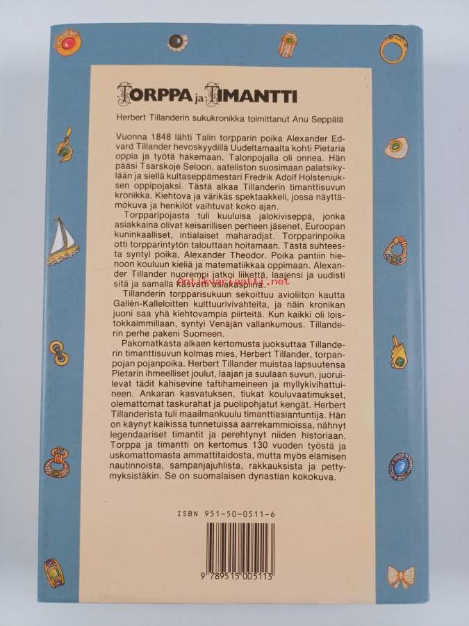 Muu(t) tekijä(t): Anu SeppäläMerkinnät: omistajamerkintäAsiasanat: muistelmat, yrityshistoriikit, kultasepät, kultasepäntyöt