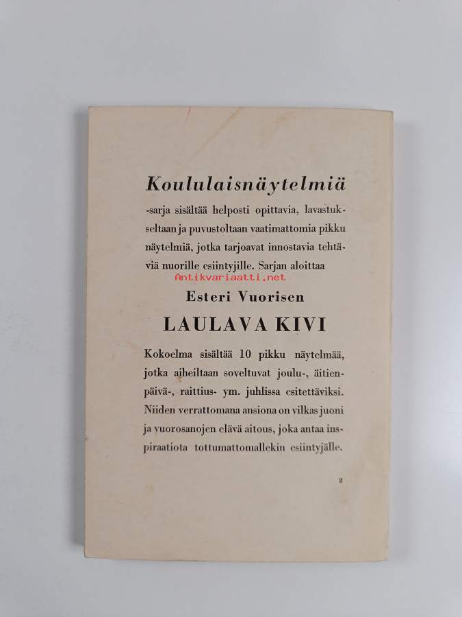 Tyydyttävä. Tarkempi kuntoluokka: K2+ ; Hieman kulumaa, pienoista taitejälkeä kansissa, selkämyksessä hieman vinoutta, selkämyksessä yksi aivan kevyt lukutaite. nidoslangat hieman purkaantuneet yhdeltä aukeamalta