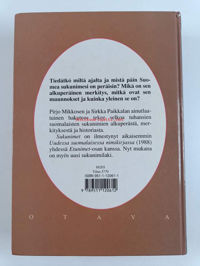 SukunimetKirjaHenkilö Mikkonen, Pirjo, ; Henkilö Paikkala, Sirkka, kirjoittaja, Otava 1992