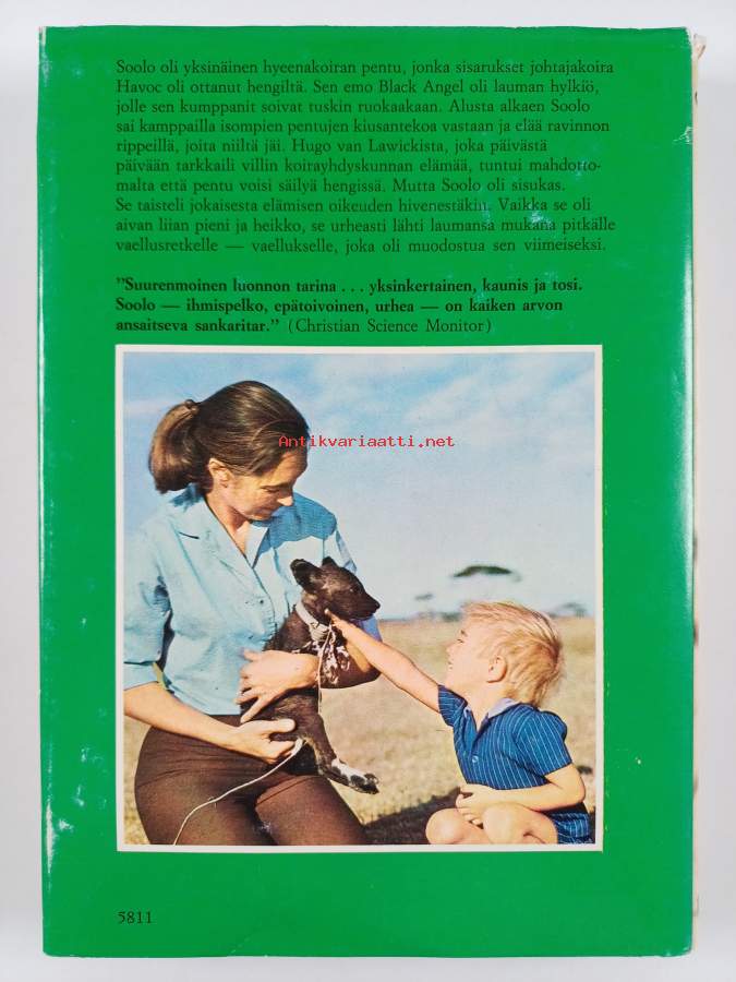 Muu(t) tekijä(t): Marjatta Soinio, Jane van Lawick-Goodall ym.Merkinnät: omistajamerkintä & exlibris: Anja PohjonenAlkuteos: Solo : The story of an African wild dog puppy and her pack