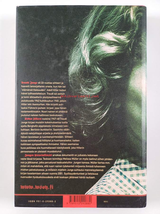Muu(t) tekijä(t): Anja Meripirtti, Melissa MullerMerkinnät: omistajamerkintäAlkuteos: Bis zur letzten Stunde : Hitlers Sekretärin erzählt ihr LebenAsiasanat: muistelmat, toinen maailmansota, sihteerit, natsit