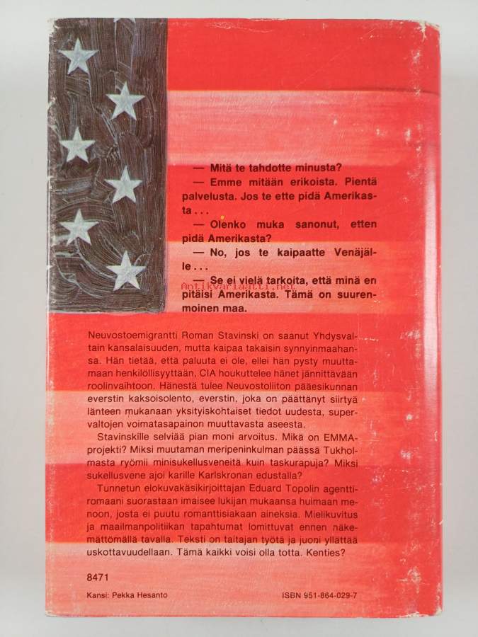 Hyvä. Tarkempi kuntoluokka: K3+ ; Pienoista kolhua selkämyksen päissä, selkämyksessä hieman vinoutta. Kansipaperin kunto: joitain repeämiä/kulumaa