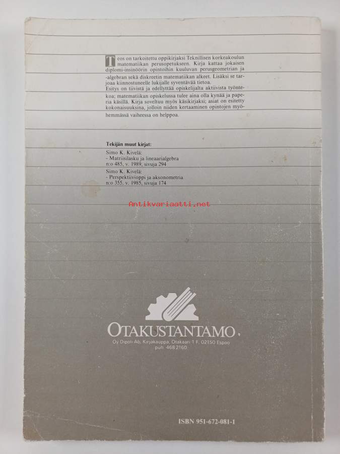 Sarja: Otakustantamo 523Asiasanat: algebra, korkeakoulut, oppikirjat, geometria, läroböcker, högskolor, Geometri