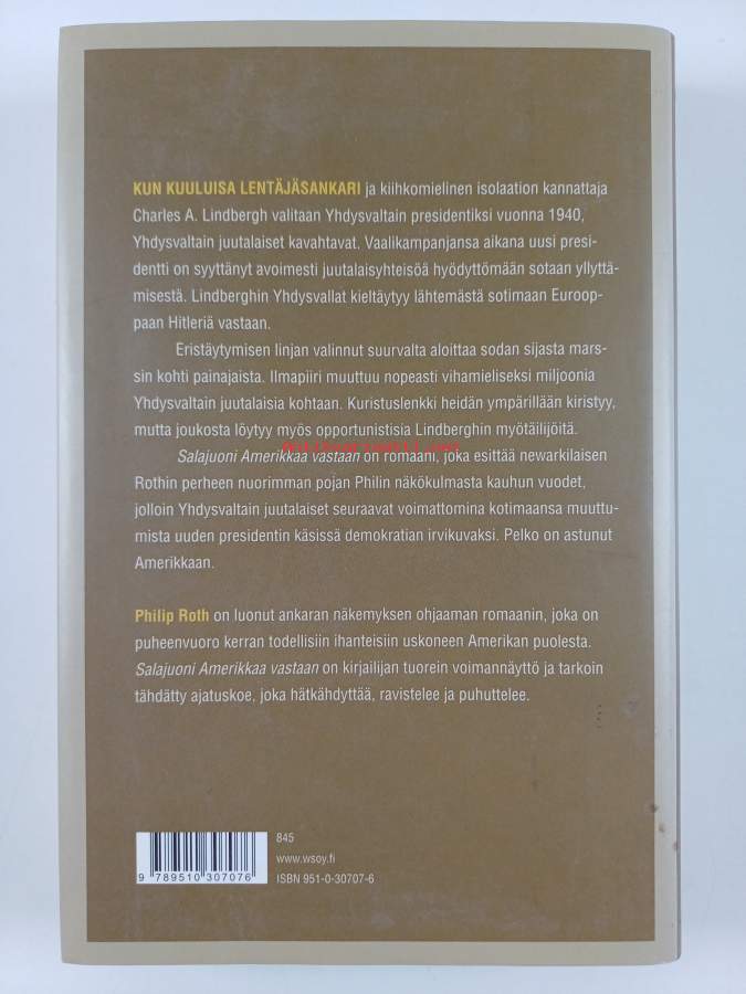 Muu(t) tekijä(t): Arto SchroderusAlkuteos: The plot against AmericaAsiasanat: vaihtoehtohistoria