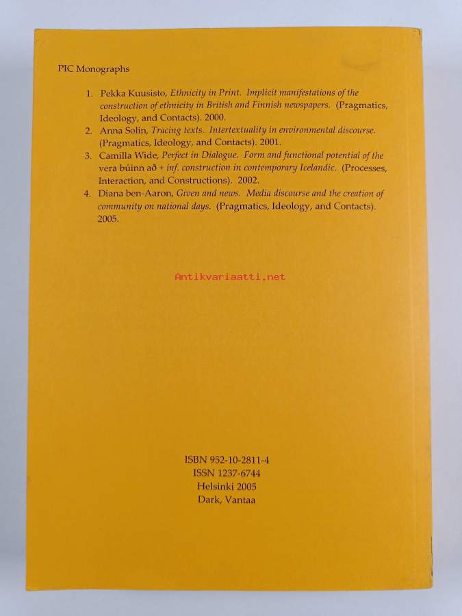 Hyvä. Tarkempi kuntoluokka: K3+ ; Pienoista nuhruisuutta kansissa, selkämyksessä aavistus vinoutta