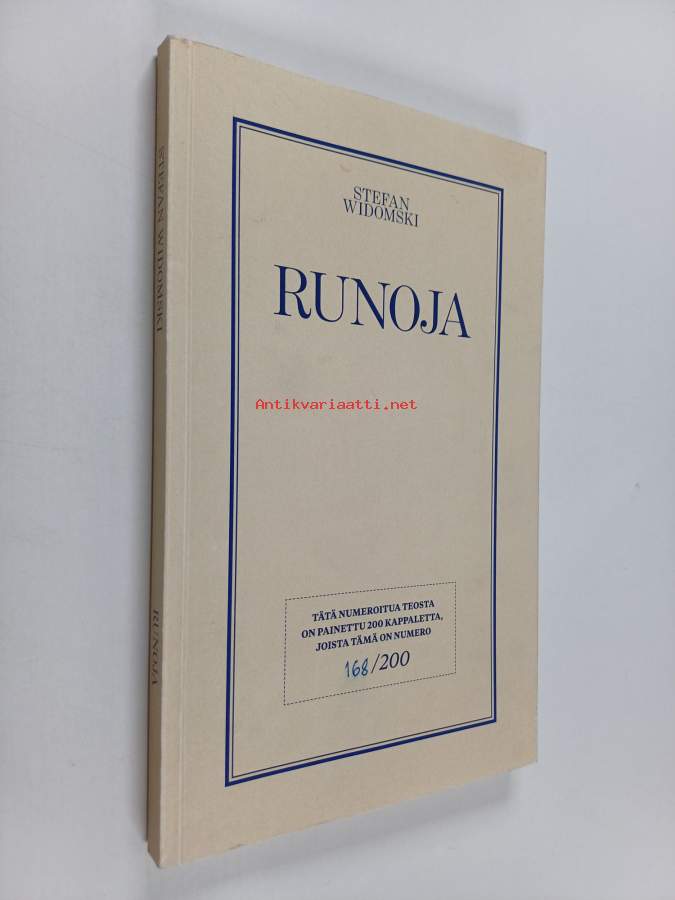 Hyvä. Tarkempi kuntoluokka: K3+ ; Hieman nuhruisuutta kansissa, selkämyksessä hieman vinoutta. numeroitu 168/200