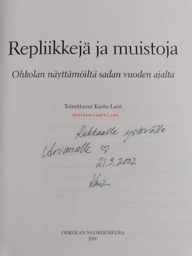 Repliikkejä ja muistoja : Ohkolan näyttämöiltä sadan vuoden ajalta (signeerattu, tekijän omiste)