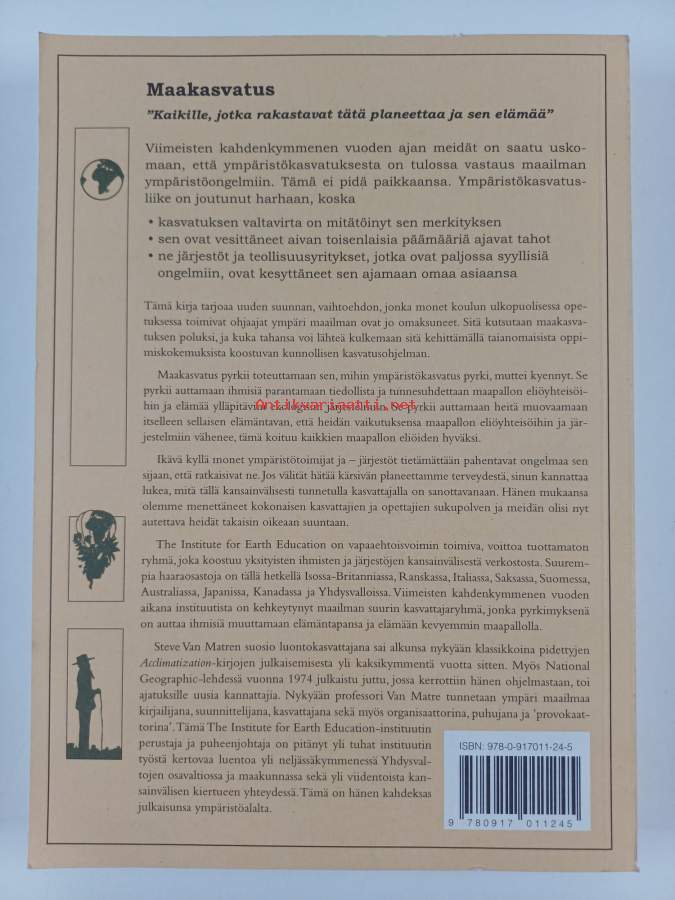 Alkuteos: Earth educationAsiasanat: luonto, elämäntapa, ympäristönsuojelu, maapallo, kasvatus, ympäristö, elämä, eliöyhteisöt, kasvatustiede, ympäristökasvatus, seikkailukasvatus