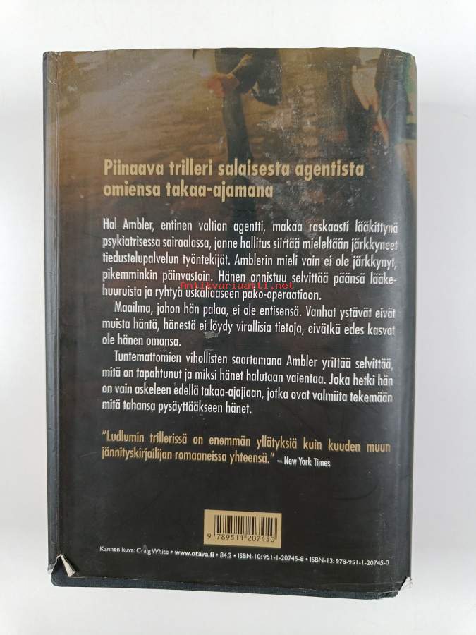 Hyvä. Hieman kulumaa reunoilla ja kulmissa, hieman tahraisuutta kansissa, selkämyksessä hieman vinoutta. Kansipaperin kunto: joitain repeämiä/kulumaa