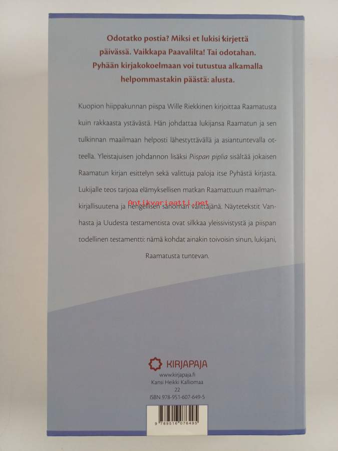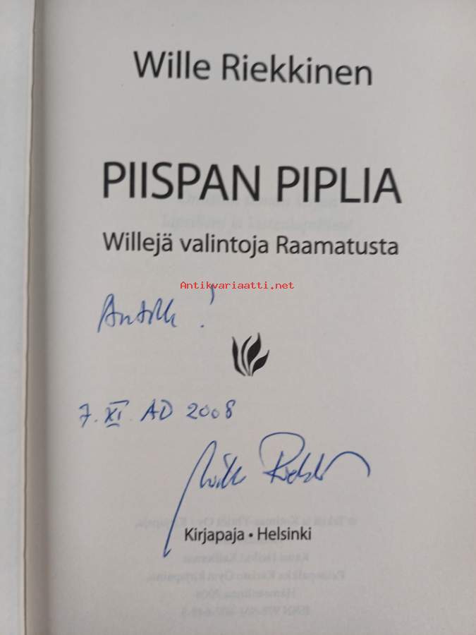 Piispan piplia : willejä valintoja Raamatusta (signeerattu, tekijän omiste)