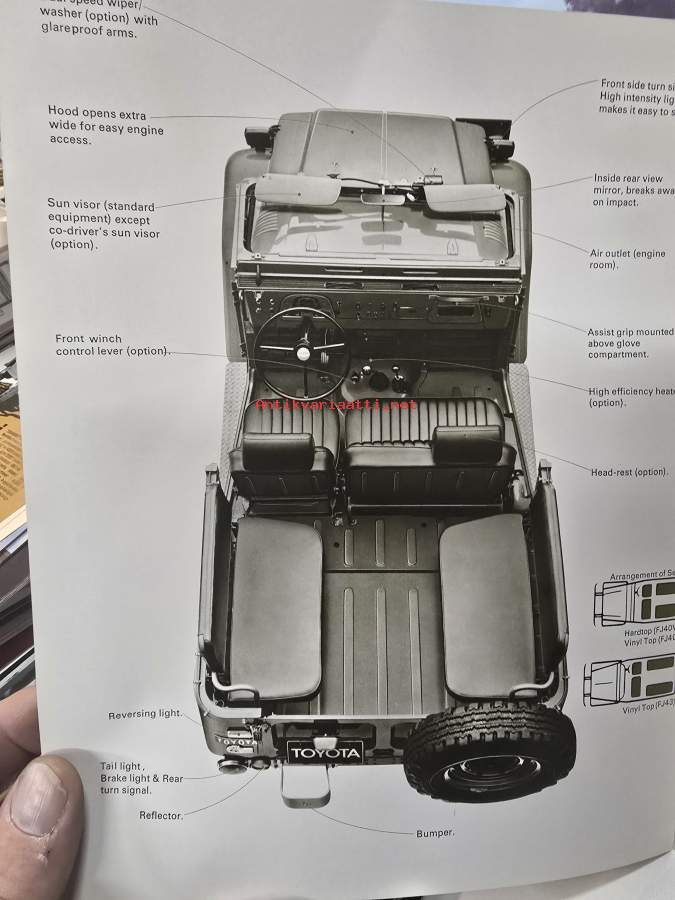 Toyota Land cruiser Hardtop, Vinyl top, Pickup ja Stadion Wagon 1969 myyntiesite.