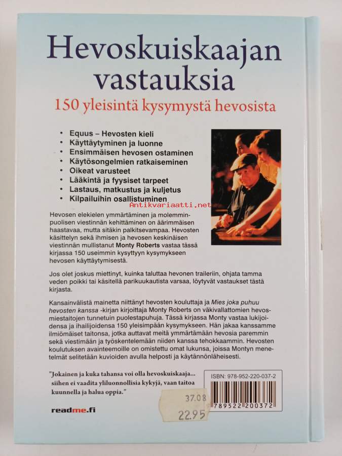 Muu(t) tekijä(t): Sini BonkeMerkinnät: omistajamerkintäAlkuteos: Ask Monty : the 150 most common horse problems solvedAsiasanat: hevonen, hevosenhoito, eläinten käyttäytyminen, eläinten koulutus