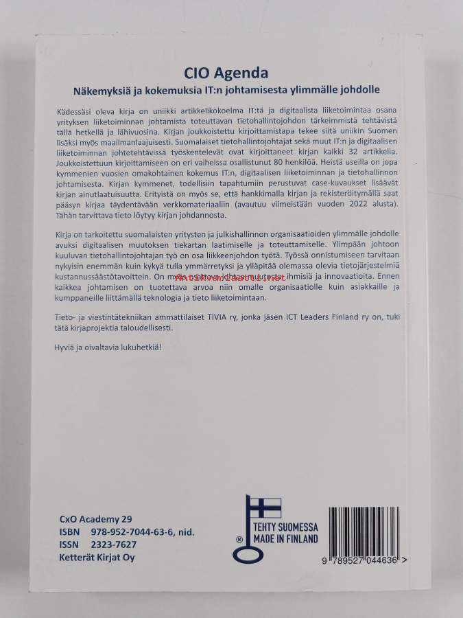 Muu(t) tekijä(t): Tomi Dahlberg, Päivi HokkanenSarja: CxO Academy Kirjat 29Asiasanat: johtaminen, tietotekniikka, liiketoiminta, organisaatiot, tietohallinto, tehtävät, muutosjohtaminen, liiketoimintamallit, strategiat, tietohallintojohtajat