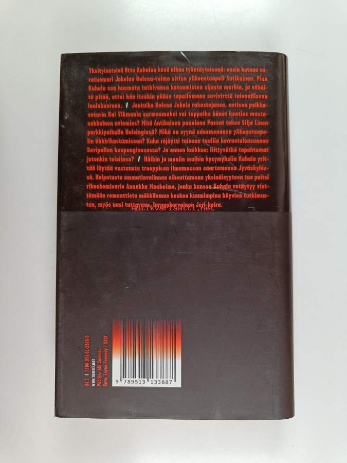 Hyvä. Hieman kulumaa kansissa, selkämyksessä hieman vinoutta. Kansipaperin kunto: pientä kulumaa