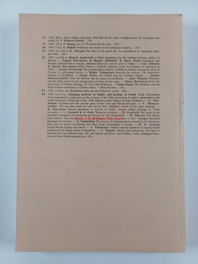 Koko nimi: Changing patterns of family and kinship in South Asia : proceedings of an international symposium on the occasion of the 50th anniversary of India's independence held at the University of Helsinki 6 May 1998Muu(t) tekijä(t): Sirpa TenhunenSarja: Studia Orientalia 84Asiasanat: kulttuurihistoria, avioliitto, perheet, kulttuuriantropologia, sukulaisuus, kulturhistoria, familjer, äktenskap, kulturantropologi, släktskap