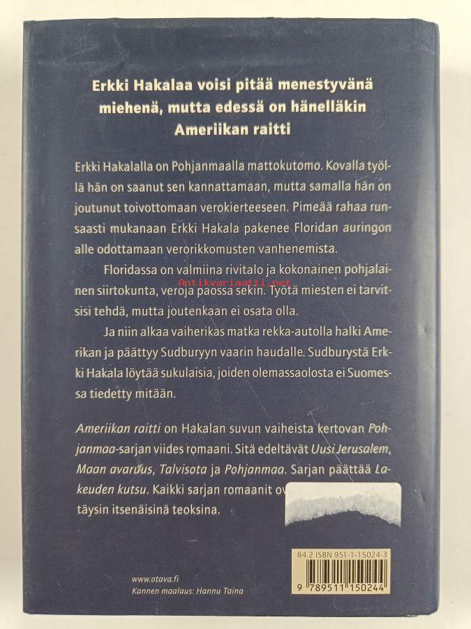 Hyvä. Tarkempi kuntoluokka: K3+ ; Hieman kulumaa kansissa, takana hintalapun jäämää, selkämyksessä hieman vinoutta. Kansipaperin kunto: jonkin verran kulumaa/pienoisia repeämiä
