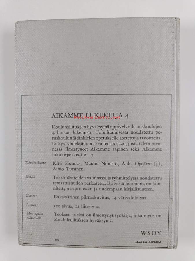 Tyydyttävä. Tarkempi kuntoluokka: K2+ ; Jonkin verran kulumaa, selkämyksessä hieman vinoutta, muutamalla sivulla lyijykynämerkintöjä. kuvituksia väritelty paikoitellen