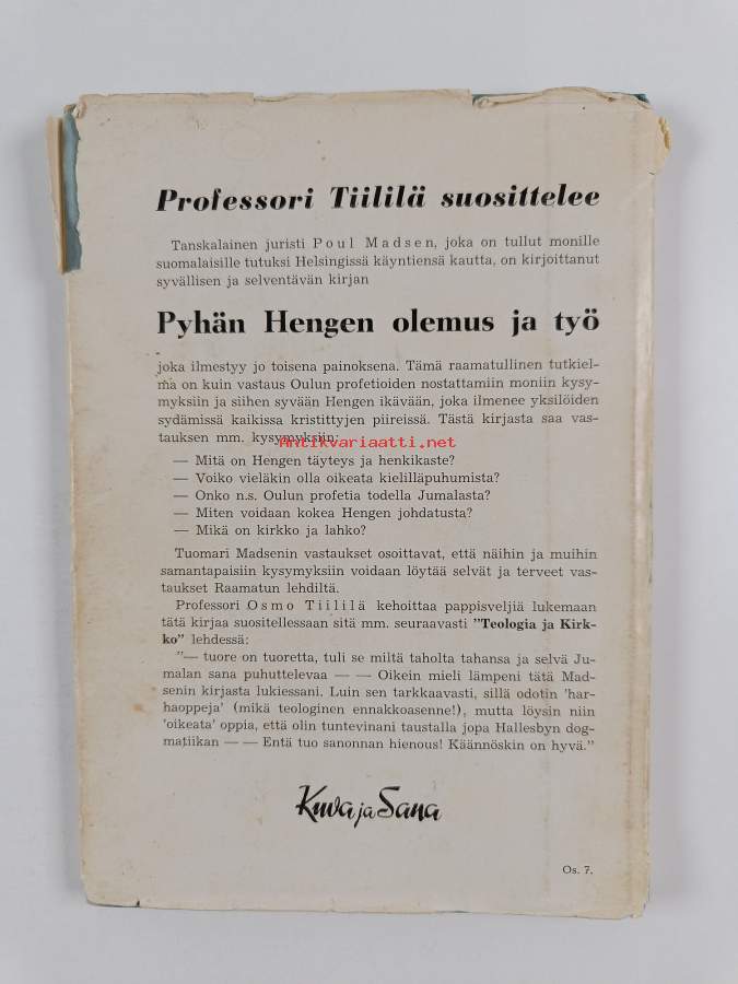 Tyydyttävä. Tarkempi kuntoluokka: K2+ ; Pienoista kolhua, hieman kulumaa, pienoista rispaantumaa, sivuilla joitain lyijykynämerkintöjä. Kansipaperin kunto: joitain repeämiä/kulumaa & tahraisuutta