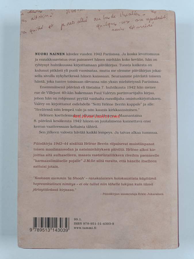 Muu(t) tekijä(t): Erkki JukarainenAlkuteos: Journal d'Helene BerrAsiasanat: juutalaisvainot, päiväkirjat, toinen maailmansota, juutalaiset