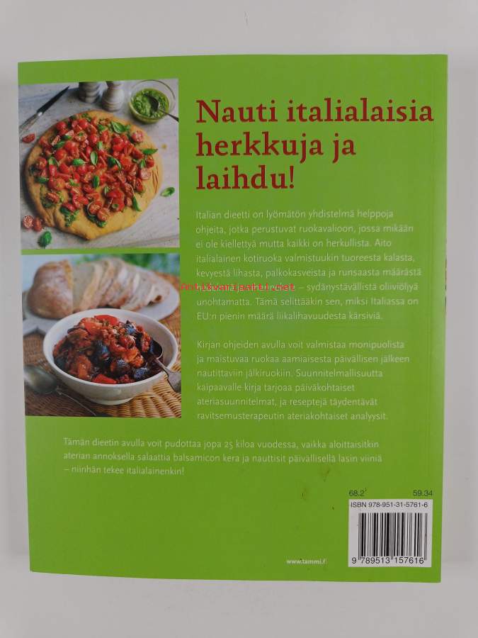 Muu(t) tekijä(t): Siiri Susitaival, Kate Whitaker ym.Alkuteos: The Italian dietAsiasanat: ruokaohjeet, keittokirjat, ruokakulttuuri, ruokavaliot, erikoisruokavaliot, laihdutus, painonhallinta