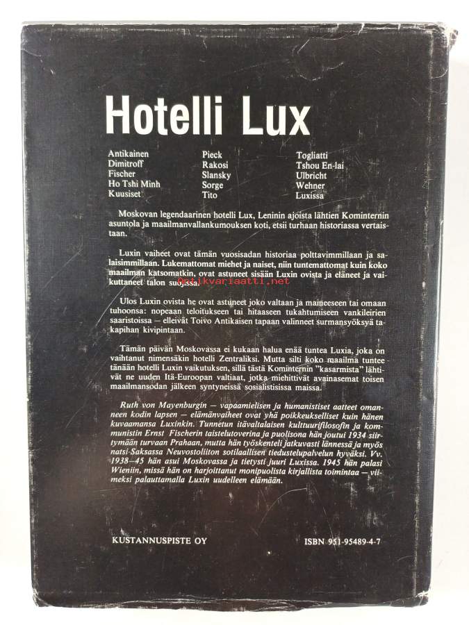 Muu(t) tekijä(t): Antti VirtanenSarja: Vapaus-sarja 5Alkuteos: Hotel LuxAsiasanat: hotellit, majatalo, yöpymispaikka, historiallinen rakennus