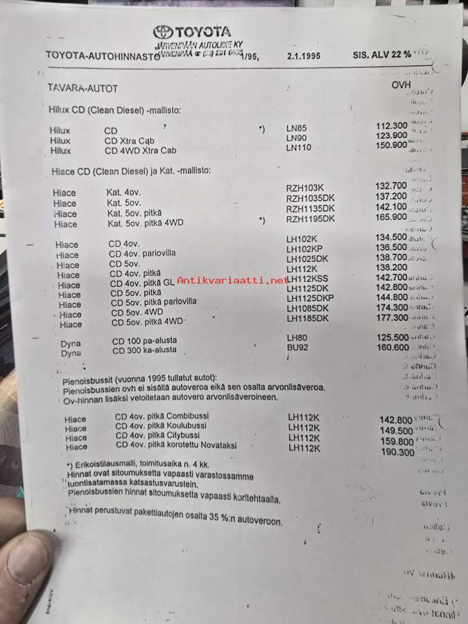 Myyntiesite Toyota Corolla 8/95.Sivuja 24.