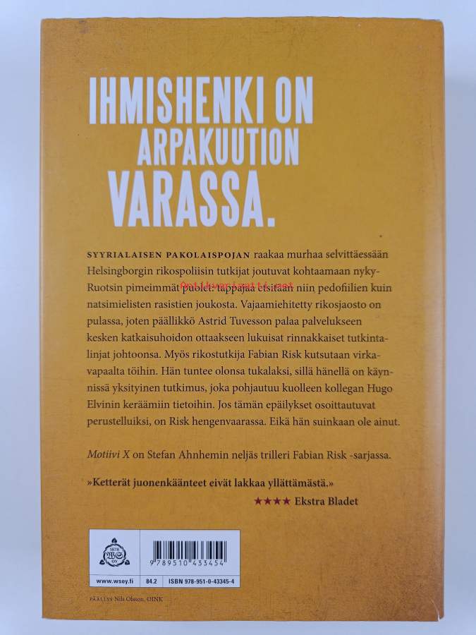 Muu(t) tekijä(t): Outi MennaSarja: Fabian Risk -sarja 4Alkuteos: Motiv X
