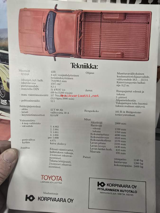 Myyntiesite Toyota Corolla 8/95.Sivuja 24.