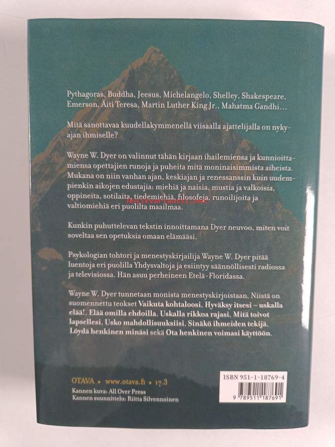 Muu(t) tekijä(t): Eeva-Liisa (suom.) JaakkolaAlkuteos: Wisdom of the Ages : A Modern Master Brings Eternal truths into Everyday LifeAsiasanat: elämäntaito, filosofit, elämänfilosofia, viisaus