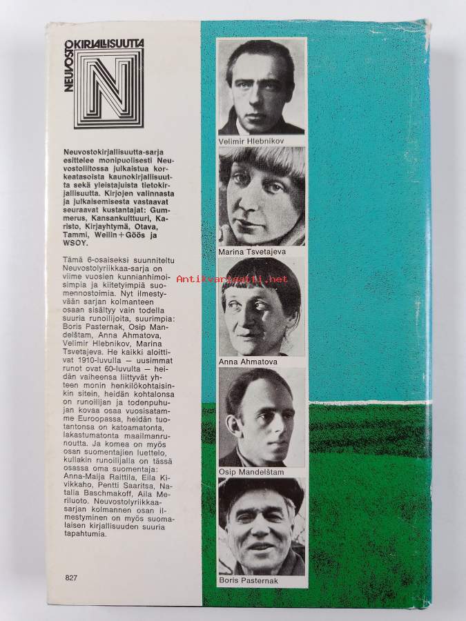 Muu(t) tekijä(t): Aila Meriluoto, Anna-Maija Raittila ym.Sarja: NeuvostokirjallisuuttaAsiasanat: kirjallisuus, runoilijat, lyriikka, venäläinen kirjallisuus