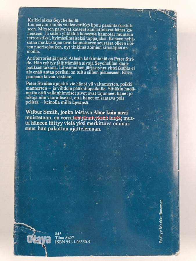 Hyvä. Tarkempi kuntoluokka: K3+ ; Hieman kolhua reunoilla ja kulmissa, selkämyksessä hieman vinoutta. Kansipaperin kunto: joitain repeämiä/kulumaa
