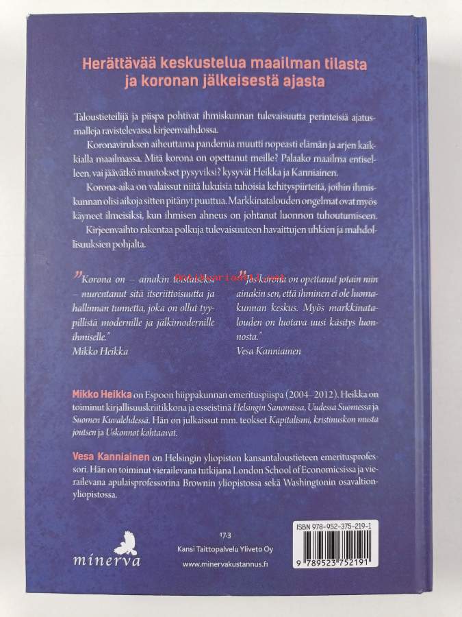 Muu(t) tekijä(t): Vesa KanniainenAsiasanat: yhteiskuntakehitys, kriisit, muutos, yhteiskunnallinen muutos, tulevaisuus, katastrofit, ympäristövaikutukset, kansainvälinen talous, keskustelu, globalisaatio, yhteiskunnalliset vaikutukset, sosiaaliset vaikutukset, oikeudenmukaisuus, taloudelliset vaikutukset, pandemiat, ekologinen tasapaino, uhat, COVID-19