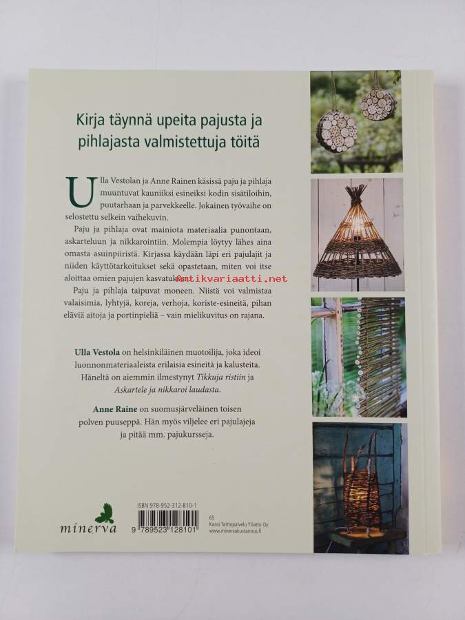 Muu(t) tekijä(t): Martti Leppä, Anne RaineAsiasanat: askartelu, käsityöt, koristeet, punontatyöt, pajutyöt, luonnonmateriaalit, pajut, käyttöesineet, punonta, pyssel, handarbeten och hantverk (objekt), dekorationer, flätningsarbeten, bruksföremål, videarbeten, naturmaterial, viden, pihlajat, rönnsläktet, flätning