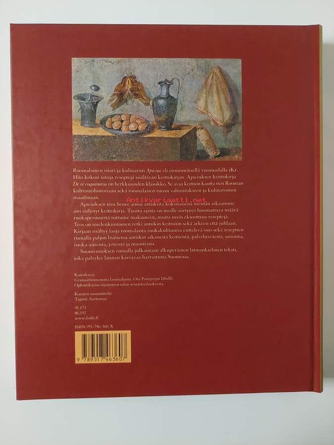 Roomalainen ritari ja kulinaristi Apicius eli ajanlaskumme ensimmäisellä vuosisadalla ja kokosi tuolloin satoja reseptejä sisältävän keittokirjan. Apiciuksen keittokirja De re coqvinaria on herkkusuiden klassikko. Kokkikirja avaa keittiön kautta tien Rooman kulttuurihistoriaan ja roomalaisen ruoan valmistuksen ja herkuttelun maailmaan.