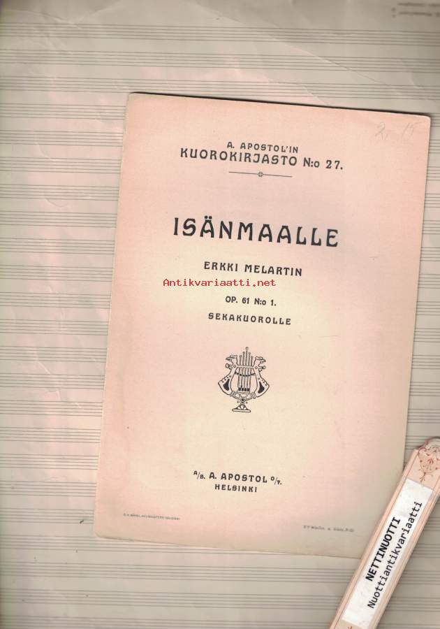 A. Apostolin'in kuorokirjasto N:o 27-Oi kaiu laulu raikkahasti...-Postitus 2,50€