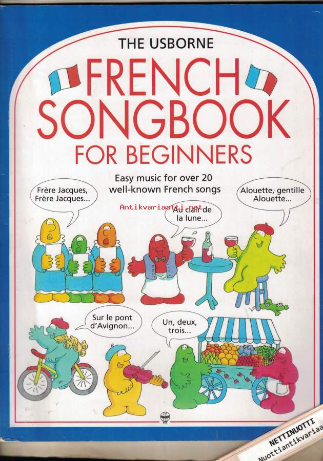 Easy music for over 20 well-known French songs.Offers simple versions of "Au claire de la lune," "Sur the pont d'Avignon," and other French folk songs, nursery tunes, and Christmas carols, with lyrics in French and re-spelled phonetically for singers, and background information on their meaning and history.Offers French folk, nursery, and Christmas songs, with phonetic lyrics-Suuri Helposti kuori
