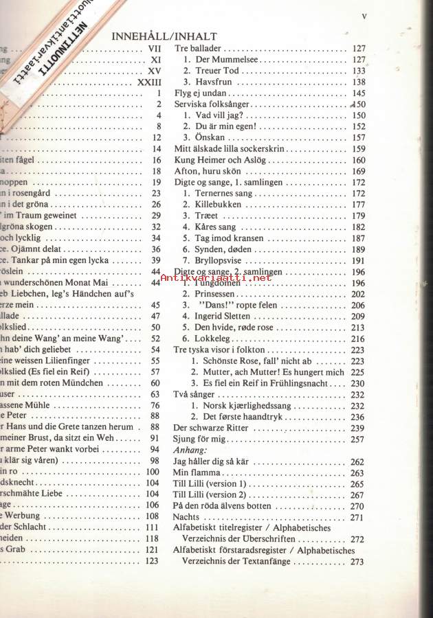 Lauluja Sånger Lieder nr 5 ravintola Grinzing Helsinki