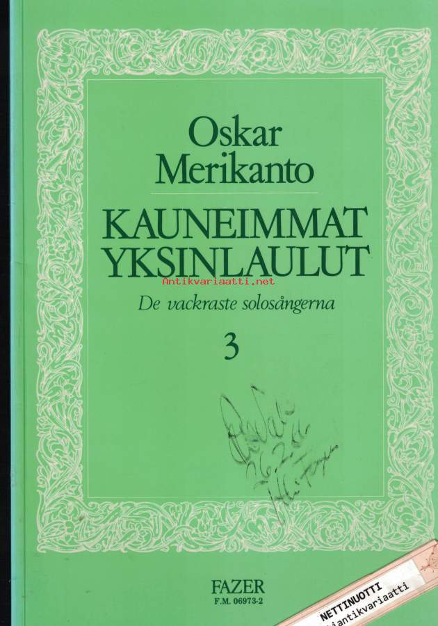 Sisällysluettelo:1. Vanha mummo : Op2/2 / Merikanto, Oskar 2. Onneton : Op2/3 / Merikanto, Oskar 3. Yöllä : Op11/3 / Merikanto, Oskar 4. Nyt ja sitten : Op34/1 / Merikanto, Oskar 5. Kuolema kannelta löi : Op49/2 / Merikanto, Oskar 6. Oi, minne emon lintunen lensi? : Op53/2 / Merikanto, Oskar 7. Kevätlaulu : Op58/4 / Merikanto, Oskar 8. Ilialin laulu : Op69/1 / Merikanto, Oskar 9. Illansuussa : Op69/2 / Merikanto, Oskar 10. Nuoruuden ylistys : Op69/3 / Merikanto, Oskar 11. Balladi : Op69/4 / Merikanto, Oskar 12. Talvikukkia : Op71/2 / Merikanto, Oskar 13. Hyvää yötä : Op75/1 / Merikanto, Oskar 14. Lauantai-ilta : Op75/2 / Merikanto, Oskar 15. Laula, laula, lapsonen : Op78/1 / Merikanto, Oskar 16. Mä haaveksin näin : Op78/2 / Merikanto, Oskar 17. Suvi-illan vieno tuuli : Op87/2 / Merikanto, Oskar 18. Hyvästi! : Op87/3 / Merikanto, Oskar 19. Agneta : Op93/1 / Merikanto, Oskar 20. Hämärissä : Op96/1 / Merikanto, Oskar 21. Iltakellot : Op106/1 / Merikanto, Oskar 22. Laulelen pojalleni pikkuiselle : Op107/1 / Merikanto, Oskar 23. Mummo : Op110/3 / Merikanto, Oskar 24. Kiitävi aatos kaipuun siivin / Merikanto, Oskar 25. Huolissan huokaileva / Merikanto, Oskar 26. Nocturne / Merikanto, Oskar .-Suuri Helposti kuori