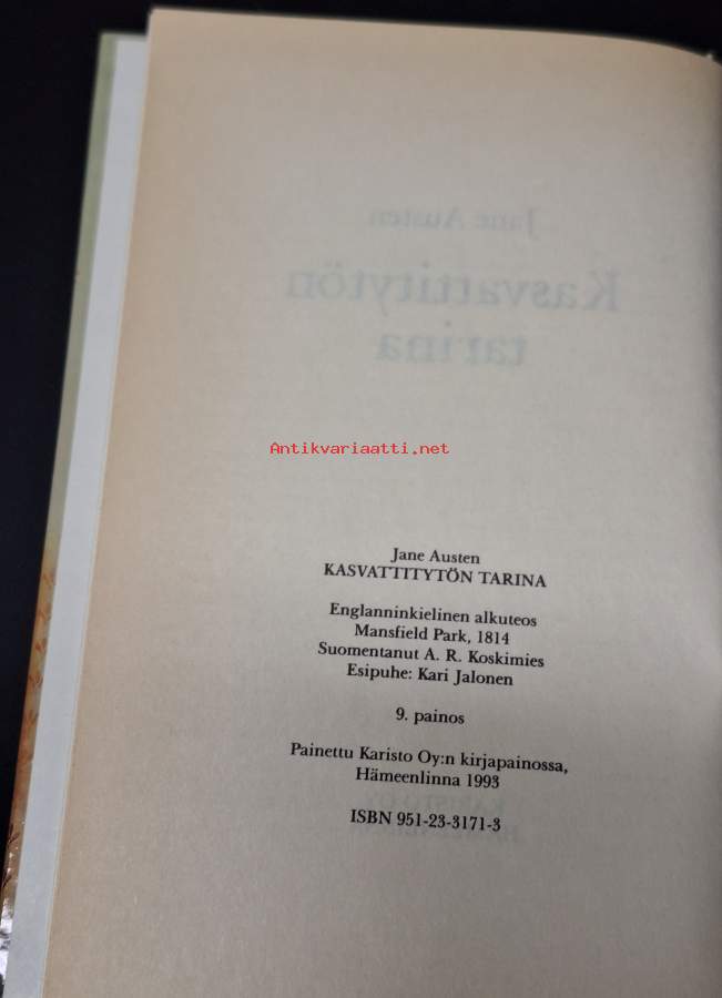 Hyvä. Kansissa hiukan naarmuisuutta, sisäsivulla nimitieto, sivut muuten eheät, hiirenkorvattomat ja merkinnättömät. Oikein siisti kappale ikäisekseenkin.