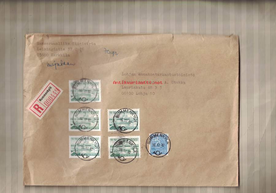 R Nummenkylä (Lohja) kirjattu kirje 1980
