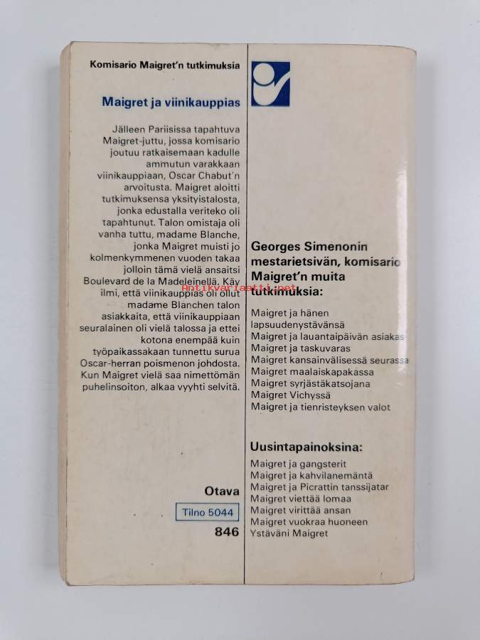 Merkinnät: omistajamerkintäSarja: Komisario Maigret’n tutkimuksiaAlkuteos: Maigret et le marchand de vin