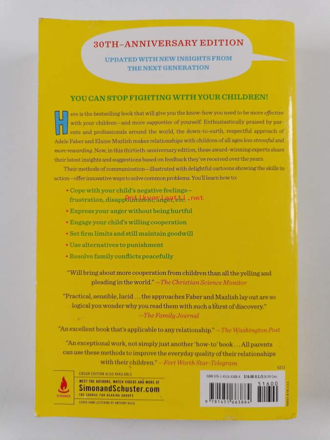 Muu(t) tekijä(t): Elaine Mazlish, Kimberly Ann Coe ym.Asiasanat: vanhempi-lapsisuhde, vanhemmuus, vuorovaikutus, kotikasvatus, kasvatus, tunnetaidot, lapset (perheenjäsenet)